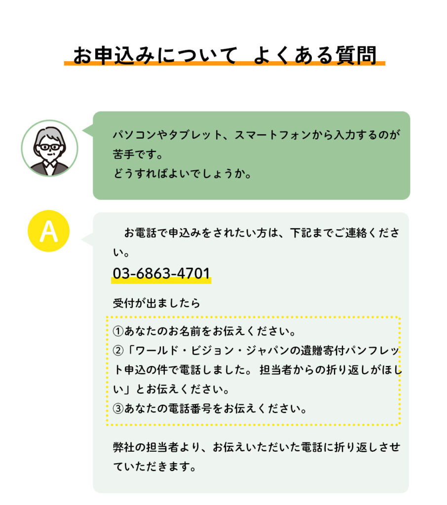 届いたパンフレットには、各団体の受け入れ相談が可能な財産が紹介されていて、必要に応じて弁護士などの専門家の手配もしてくれることがわかりました。また気軽に問合せができる窓口の案内もあり、自分達だけでは手続きなどが煩雑で躊躇していたのですが、パンフレットのおかげで前向きに検討するきっかけになりました。